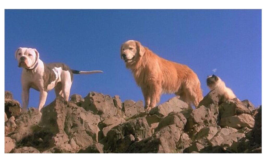An example of Loving Pride (e.g., Love and Vicarious Pride variant) felt by the audience. Chance, Shadow, and Sassy from the movie Homeward Bound: The Incredible Journey (1993).