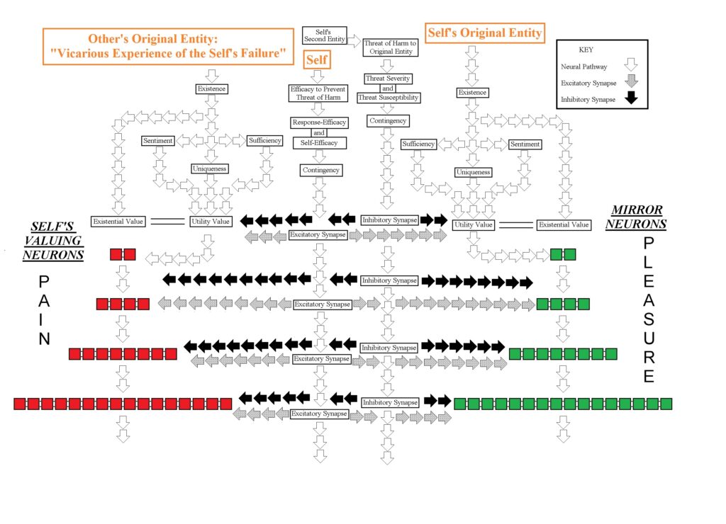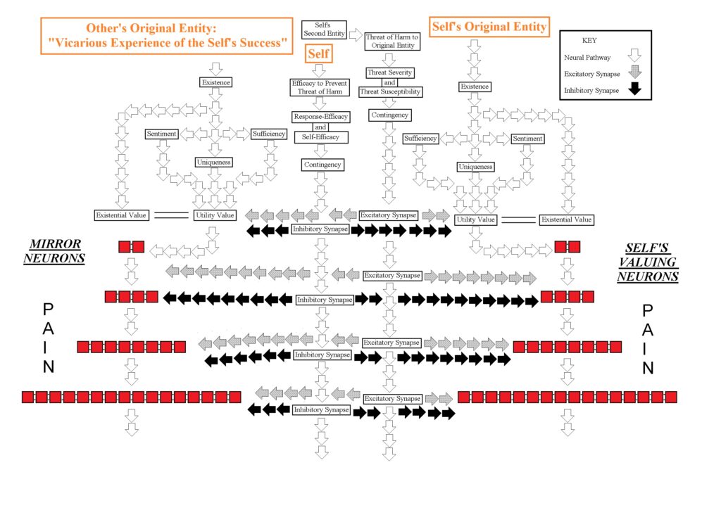 Image 5a (below) Sample neural model of Hateful Humiliation where the self is the passive party and feels Hate and Vicarious Humiliation.