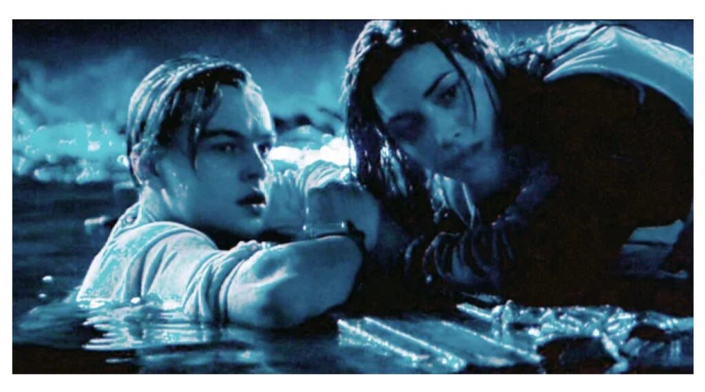 An example of Sympathetic Shame (e.g., Sympathy and Vicarious Shame variant) felt by the audience. Jack and Rose on the floating piece of wood from the movie Titanic (1997)