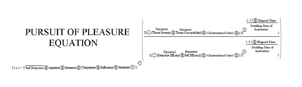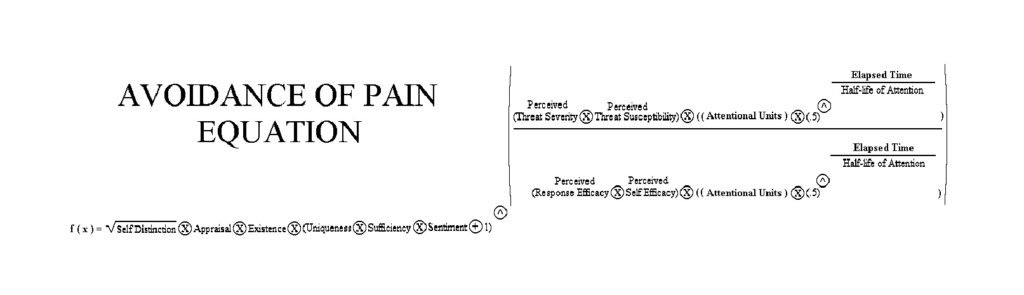 In the remaining articles, each category of emotion will be examined more in depth with either contemporary examples or hypothetical ones. Some of the relationships between variables will also be explored with sample functions comprised of the variables introduced in the first five articles. A sample function for both the Avoidance of Pain and Pursuit of Pleasure equations is provided below.