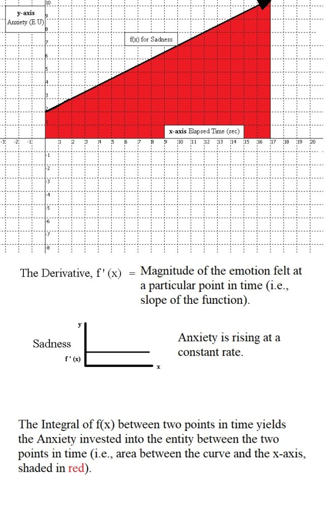 A brief explanation of each emotion along with a sample graph where applicable, follows below. A more in depth explanation of each of the emotions along with examples, descriptions of what variables in the functions could lead to these emotions arising, how the self can regulate these emotions, and instances of other miscellaneous emotions will follow in the remaining six articles (articles 7-12).