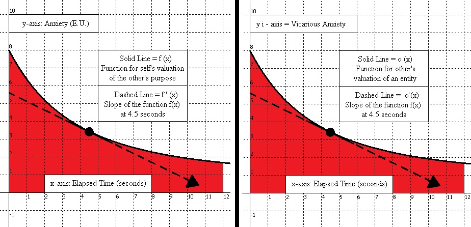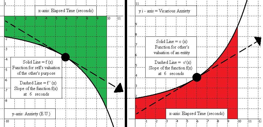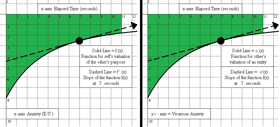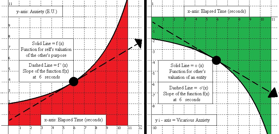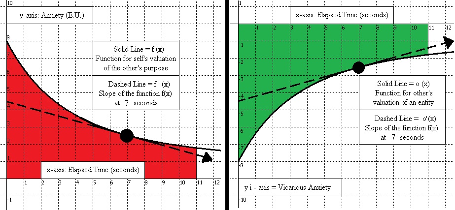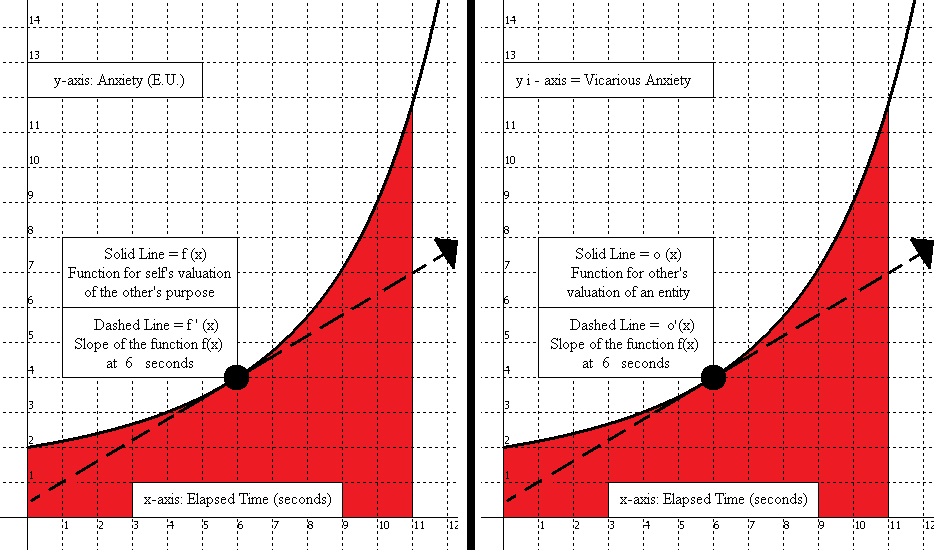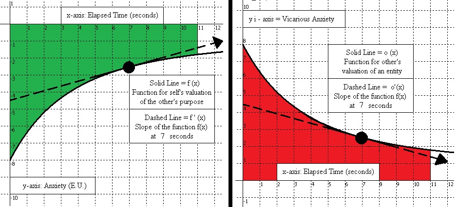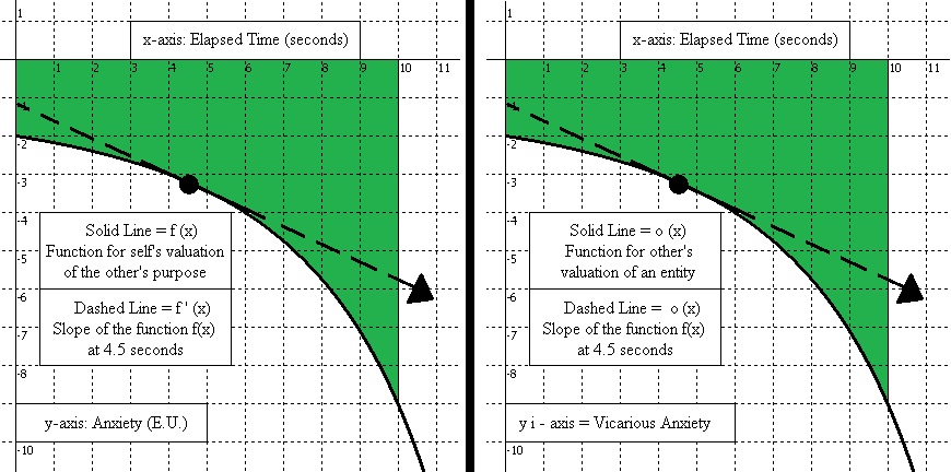 For Shame and Vicarious Sympathy, the self would have agency and the graphs would be flipped, with the self’s valuation of an entity being on the right, and their imagining of the other party vicariously experiencing their failure on the left. In contrast to Vicarious Love, with Vicarious Sympathy the self would be vicariously experiencing the other party wanting to vicariously experience the self’s own success, but because the individual failed then that awareness of the disappointment (Shame) is felt along with Vicarious Sympathy.
