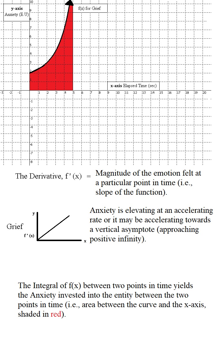 Grief felt for a particular entity is characterized by an individual’s valuation of the entity rising at an accelerating rate, oftentimes approaching a vertical asymptote (i.e., towards positive infinity). A steep slope or a vertical asymptote could arise due to the self’s realization that the entity is either nearly impossible to attain or no longer attainable at all.